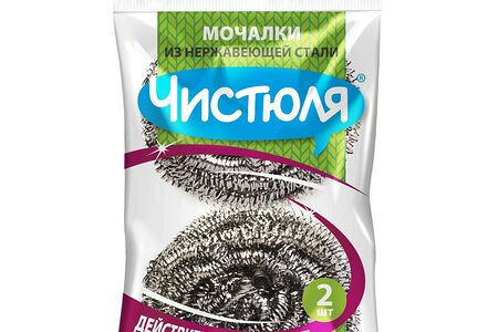 Мочалки Чистюля металлические из нержавеющей стали применяется для чистки противней, грилей, казанов, чугунных сковород и другой кухонной утвари для жарки от сильных загрязнений, нагара. Особенности мочалки: позволяет быстро и качественно справиться со стойкими загрязнениями; в составе нержавеющая сталь действительно не ржавеет; благодаря спиральной структуре мочалка упругая - комфортна в использовании, быстро и просто промывается от загрязнений; прочная, не рассыпается; долго служит и сохраняет внешний вид.
