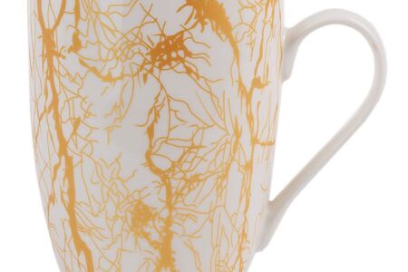 Кружка фарфоровая, белая, желтый рисунок, 380 мл доставка