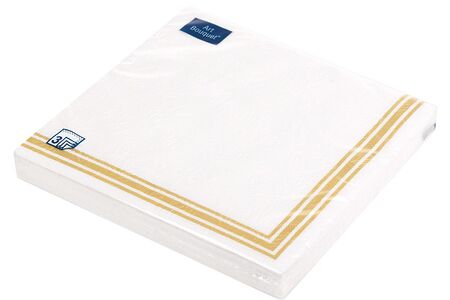 Стильные бумажные салфетки Рамка Золотая применяют при сервировке и оформлении стола. Являются неотъемлемый аксессуаром на кухонном столе.