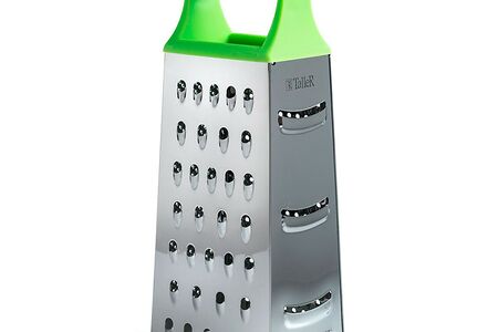 Терка Ринн имеет 4 вида лезвий: крупная терка, средняя терка, мелкая терка, шинковка. Ручка удобной формы не выскальзывает из рук даже при намокании. Нескользящие силиконовые протекторы на основании предотвращают скольжение во время использования и защищает поверхность от повреждений.