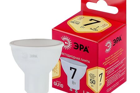 Светодиодная лампа Эра позволяет экономить до 90 электроэнергии по сравнению с лампой накаливания с аналогичным световым потоком. Колба выполнена в форме спота. Лампочка мощностью 7 Вт оснащена цоколем GU10. Излучает теплый свет.
