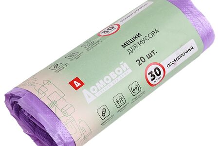 Мешки для мусора Домовой особопрочные, сиреневые, 20 шт, 30 л доставка