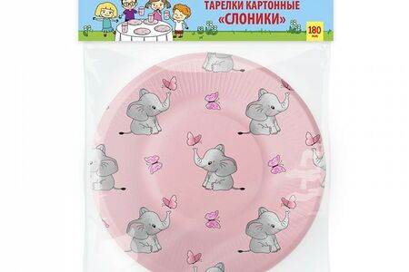 Набор тарелок бумажных одноразовых Paterra Слоники, 18 см, 6 штук доставка