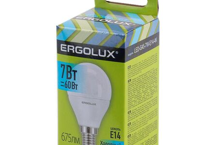 Светодиодная лампа Ergolux создает яркое ровное освещение и экономит до 90 электроэнергии по сравнению с лампой накаливания.