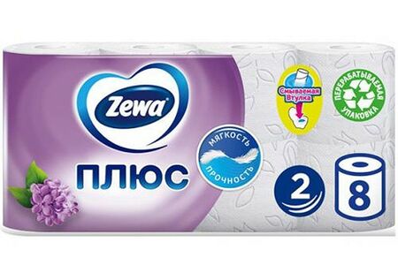 Туалетная бумага Zewa Плюс 2-слойная Белая с ароматом сирени, изготовлена из первичной целлюлозы. Туалетная бумага высокого качества – она мягкая, прочная, с четкой перфорацией и хорошими абсорбирующими свойствами. Туалетная бумага ZEWA «Мягкая, как перышко»!