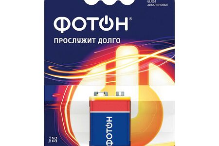 Алкалиновая щелочная батарейка Фотон Крона в блистере. Мощная батарейка с высокой емкостью и низким саморазрядом. В комплекте 1 штука.
