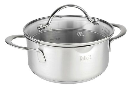 Кастрюля TalleR Авелина изготовлена из высококачественной нержавеющей стали. Она оборудована капсулированным дном, а внешняя и внутренняя полировки являются матовыми. Форма края кастрюли предусматривает желобок для удобного слива жидкости.