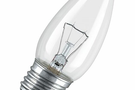 Лампа мощностью 40 Вт оснащена цоколем Е27. Колба выполнена в форме свечи. Лампочка излучает теплый свет.