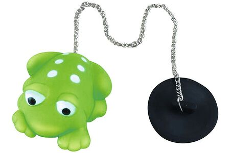 Пробка для ванны Рыжий кот «Лягушка» изготовлена из резины с маленьким зеленым лягушонком на конце цепочки. Такая пробка будет не только плотно прилегать к сливу, но и развлечет ребенка во время купания.