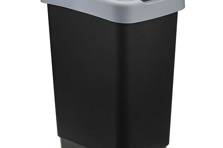 Крышка открывается в двух положениях: открывается полностью и фиксируется в вертикальном положении и двигается вниз и фиксируется также в вертикальном положении. Объём 25 л, позволяет использовать контейнер как дома, так и в общественных местах.