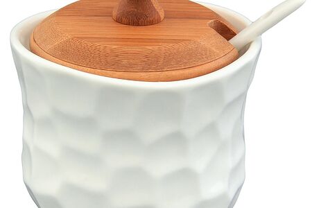 Баночка для специй Айсберг с фарфоровой ложкой и деревянной крышкой, выполнена из высококачественного фарфора, а крышка из натурального бамбука. Теплое цветовое решение и изящный рельеф баночки подходит любой сервировке и добавит уюта в каждый дом. Баночку можно использовать для специй, для соусов, например, хрена или горчицы или для тертого сыра.
