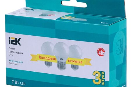 Лампа светодиодная IEK, E27, G45, шар, 7Вт, 4000К, 230В, 3шт доставка