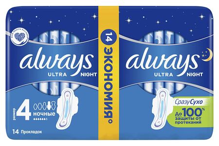 Прокладки гигиенические ALWAYS Ultra Night Duo, 14шт. доставка