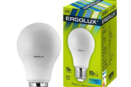 Светодиодная лампа Ergolux обладает высокой ударопрочностью благодаря металлопластиковому корпусу, обеспечивает мгновенное включение, работу без мерцания, широкий диапазон рабочего напряжения от 172 до 265 В.