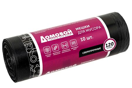 Мешки для мусора Домовой, суперпрочные, черные, 120л/10шт доставка