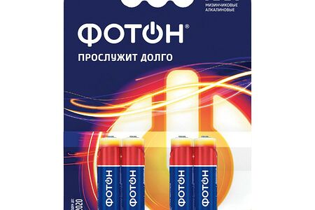 Алкалиновые батарейки Фотон в картонной блистерной упаковке 4 шт. Щелочные алкалиновые батарейки Фотон показывают великолепные результаты работы в различных устройствах и приборах. Они идеально подходят, например, для ручных фонарей, для аудиомагнитол, для mp3-аудиоплееров и диктофонов, для цифровых фотоаппаратов и других портативных и бытовых устройств.