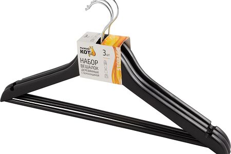 Набор вешалок для одежды Рыжий Кот с перекладиной, 3 шт, 45 см, дерево, черный доставка
