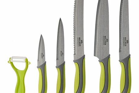 Лезвия ножей Walmer Vegan выполнены из высококачественной нержавеющей стали, а ручки оборудованы вставкой из силикона. Такой набор ножей будет прекрасным выбором для современной кухни! Овощечистка обладает керамическим лезвием, за счет чего вы сможете быстро и легко почистить овощи.