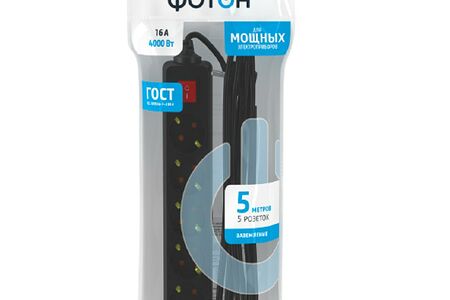Удлинитель сетевой Фотон 16-55ЕS имеет 5 гнезд, что обеспечивает возможность одновременного подключения сразу нескольких приборов. Контактные шины изготовлены из латунного сплава, обеспечивающего оптимальную электропроводность, а также максимально плотный контакт со штырями вилки подключаемого электроприбора.