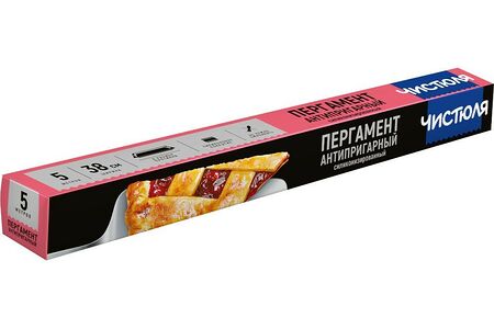 Антипригарный силиконизированный пергамент Чистюля идеально подходит для выпечки. Двухстороннее антипригарное силиконовое покрытие не требует смазывания и не допускает прилипания и пригорания продукта.