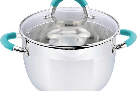 Кастрюля Bravo изготовлена из нержавеющей стали и оборудована капсулированным пятислойным дном. Внутри есть зеркальная полировка с отметками литража. В комплект входит крышка с дуршлагом, благодаря которому можно удобно сливать воду.
