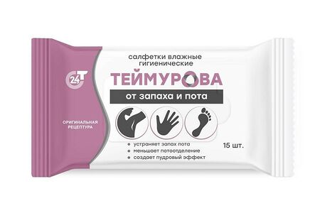 Салфетки влажные Теймурова гигиенические, от запаха и пота, 15 шт доставка