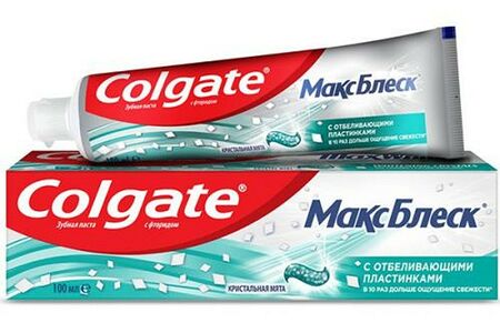 Тысячи отбеливающих пластинок, входящие в состав зубной пасты Colgate «Макс Блеск», придают зубам сияющую белизну ослепительной улыбки. Заряжают отбеливающей силой во время чистки зубов и оставляет дыхание свежим надолго.