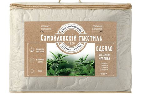 Одеяло облегченное САМОЙЛОВСКИЙ ТЕКСТИЛЬ Крапива 1.5-сп 140х205см нап-ль: крапива 40%,п/э вол. 60%,чехол: хлопок 100% 150г/м2,сумка,792943 доставка