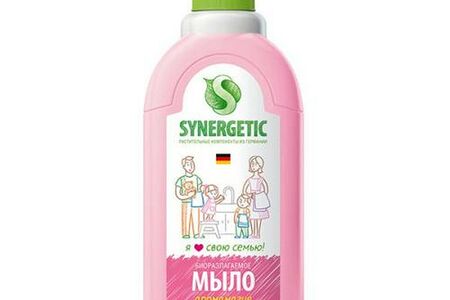 С жидким мылом Synergetic кожа станет не только чистой, но и невероятно нежной. Мыло гипоаллергенное и обладает эффектом увлажнения, создано полностью из растительных компонентов. Идеальный вариант для «перезаправки» маленьких бутылочек с дозатором.