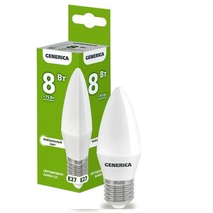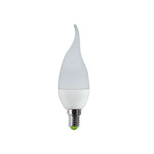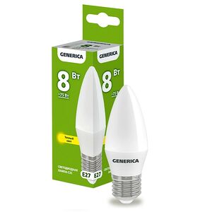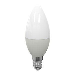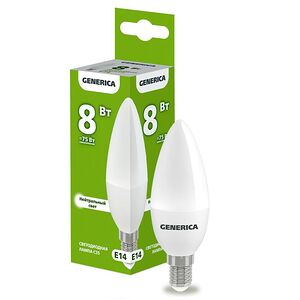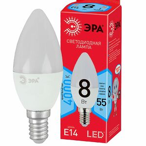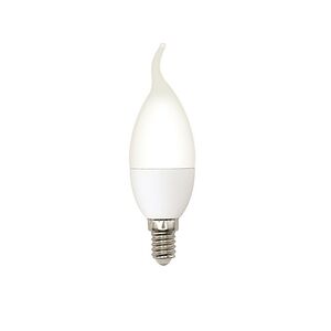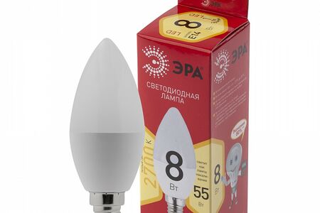Лампа мощностью 8 Вт оснащена цоколем типа Е14. Колба выполнена в форме свечи. Такая лампочка обеспечивает стабильный теплый свет без мерцания. Она мгновенно включается и не нагревается.