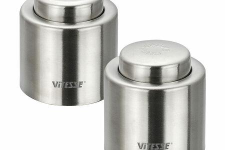В набор для закупоривания бутылок Vitesse VS-1836 входят пробки для бутылки вина и шампанского. Они изготовлены из нержавеющей стали с матовой полировкой. Станут прекрасным подарком любителям алкогольных напитков. Можно мыть в посудомоечной машине.