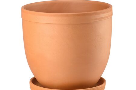Керамический горшок Терракот классической формы с подставкой украсит любой интерьер и станет хорошим домом для вашего растения.