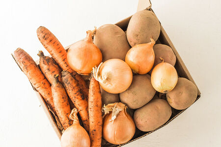 Сведения о составе: картофель белый, морковь, лук репчатый. Состав коробки может измениться.
