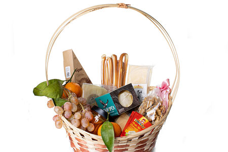 Сведения о составе: мёд Донниковый, сыр RSC Швейцария Swiss 48%, Сыр Шамбала фермерский, сыр полутвёрдый Латтерия Лефкадии, мягкий сыр с белой плесенью Бри, сыр с голубой плесенью Горгонзола, сыр мягкий Горный Орёл из коровьего молока, сулугуни копчёные палочки, мандарины, виноград зелёный без косточек, горный грецкий орех.