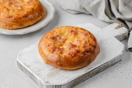 Тесто сдобное, майонез, томаты, сыр, ветчина