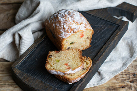 Ароматный творожный кекс, с добавлением сладких и полезных цукатов и изюма, выпечен по фирменному рецепту из свежих фермерских продуктов. Мягкая и очень вкусная выпечка на завтрак поднимет настроение с самого начала дня!
