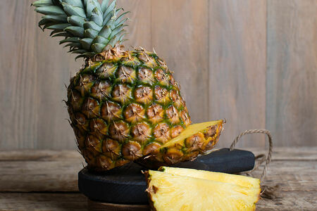 Ананас обладает неповторимым сладким вкусом с небольшим характерным послевкусием, богат витаминами группы А, В, С, железом, кальцием. Отлично сочетается с десертами, выпечкой, мясом. Из ананаса можно приготовить вкусные, освежающие напитки, цукаты, добавить в салаты.