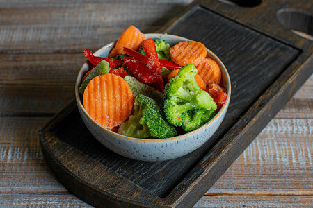 Сведения о составе: овощи 100% в различных пропорциях: морковь, стручковая фасоль, перец сладкий, брокколи, кукуруза миниУсловия хранения: -18 - -25 °CСтрана изготовления: РоссияСведения об упаковке: Пакет