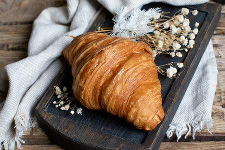 Классический круассан обладает нежной и очень мягкой текстурой. Вкусный, только что выпеченный круассан с ароматом сливочного масла прекрасно сочетается с ароматным чаем или бодрящим кофе. Попробуйте добавить в круассан начинку в виде ломтика ветчины, жареного яйца и сыра, получится очень вкусный и сытный завтрак.