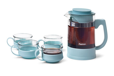 Чайный набор от компании FISSMAN изготовлен по современной технологии из особо прочного боросиликатного стекла. В набор входит заварочный чайник и 4 чашки. Для любителей зеленых или связанных цветущих чаев этот чайный набор станет поистине незаменимым, а также он обладает неоспоримыми преимуществами: • Надежность и долговечность - не темнеет, долго сохраняет свой презентабельный вид • Съемный фильтр из нержавеющей стали не позволит чаинкам попасть в чашку • Прозрачный корпус позволяет контролировать процесс приготовления напитка • Cтекло не впитывает посторонние запахи, поэтому вы сможете наслаждаться вкусом любимого напитка в гармонии со своими чувствами • Большая крышка для удобного наполнения и ухода • Благодаря красивой подарочной упаковке набор может стать отличным подарком • В набор входит заварочный чайник и 4 чашки • Устойчивость к загрязнению, легкость ухода • Безопасно для здоровья и окружающей среды