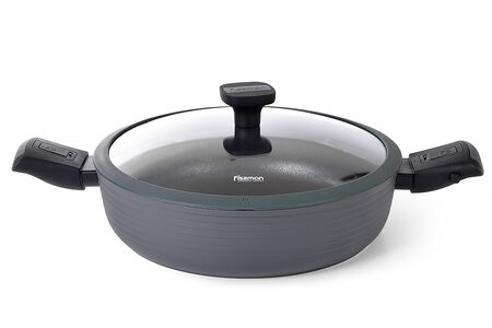 Компания FISSMAN - признанный лидер в производстве кухонной утвари - представляет новую эксклюзивную серию посуды BRILLIANT, главным преимуществом которой является профессиональное антипригарное покрытие XylanPlus (USA, www.whitfordww.com). • Профессиональное покрытие XylanPlus содержит керамические частицы, которые усиливают антипригарные свойства и обеспечивают надежную защиту от механического истирания. • Посуда серии BRILLIANT отвечает международным экологическим стандартам, имеет соответствующие сертификаты безопасности. При производстве посуды компания FISSMAN не применяет PFOA, токсичные, канцерогенные компоненты. • Благодаря съемным бакелитовым ручкам посуду BRILLIANT можно использовать для запекания в духовке. Изделия удобно хранить в разобранном виде. • Дизайн продуман до мелочей: уникальный серо-оливковый цвет снаружи, оригинальная внешняя поверхность с объемным графическим рисунком, а также съемные стильные бакелитовые ручки с силиконовыми вставками удовлетворят потребности самых изысканных и современных покупателей. • Стеклянная крышка с силиконовым ободком плотно прилегает, не скользя и не царапая покрытие, позволяет наблюдать за готовностью пищи, не открывая посуду, тем самым исключая попадания брызг на кожу и одежду. • Серия BRILLIANT --это широкий модельный ряд посуды для приготовления различных видов блюд: сковороды глубокие, ковши, кастрюли. • Индукционное дно посуды серии BRILLIANT быстро и равномерно нагревается до нужной температуры. Посуда серии BRILLIANT подходит для всех типов плит.