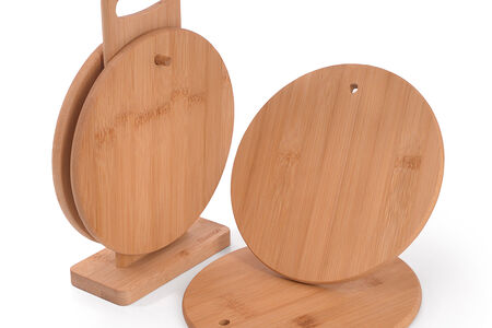 Компания FISSMAN предлагает Вашему вниманию набор из 4 бамбуковых разделочных досок на подставке.