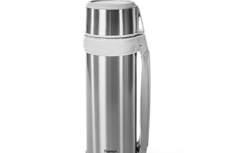Термос металлический объёмом 1 литр с корпусом из нержавеющей стали 304 имеет двойные вакуумные стенки и удобную ручку для переноски. Отлично подойдёт для чая, кофе и других горячих и холодных напитков.