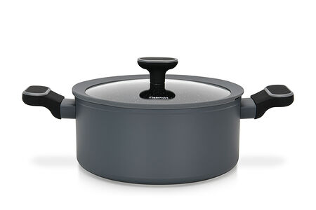 Главная особенность серии и гордость бренда FISSMAN — сверхпрочное многослойное антипригарное покрытие TouchStone собственной разработки. TouchStone — покрытие, которое выбирают профессиональные повара. • За счет гладкой поверхности хорошо и быстро готовятся как мясные, так и овощные блюда, изделия легко чистятся. • Покрытие TouchStone устойчиво к коррозии и истиранию. Точки разных цветов отвечают за устойчивость к разным видам воздействия, а это значит, что производитель использует слои, защищающие от разных типов повреждений. • Бакелитовые ручки с soft-touch покрытием удобны в использовании, приятны на ощупь, не скользят, не нагреваются. • Стеклянная крышка с силиконовым ободком плотно прилегает, не скользя и не царапая покрытие, позволяет наблюдать за готовностью пищи, не открывая посуду, тем самым, исключая попадания брызг на кожу и одежду. • Подходят для всех типов плит, включая индукционную. • Серия LAURA представлена изделиями различной функциональности: сковороды классические, кастрюли, а также ковши.