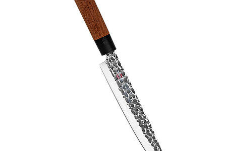 Гастрономический или филейный нож FISSMAN KENSEI ITTOSAI 8" прекрасный помощник при нарезке. Лезвие очень тонкое и гибкое, что облегчает разделку мяса и рыбы на филе. Он очень удобен также для приготовления карпаччо, например, из говядины или лосося. За счет длинного и узкого лезвия легко добиться тонких, идеально ровных ломтиков. Устойчивость к коррозии и долговечность благодаря особой технологии закалки металла холодом Korudo до оптимального уровня 58 HRC по шкале Роквелла. Лезвие исполнено из высокоуглеродистой японской стали AUS-8, эта сталь очень прочная и великолепно держит заточку. Нож вручную доведен на водном точильном камне зернистостью 6000 грит для безупречной остроты. Идеальный угол резки благодаря заточке 15-17 градусов на сторону. Рукоять ножа, согласно японским канонам, выполнена из натурального дерева и требует бережного обращения. Упаковка из текстурного картона премиум класса с серебряным тиснением не оставит равнодушным ни одного настоящего ценителя ножей высокого качества.