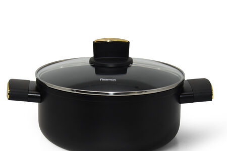 Главная особенность серии PAULA и гордость бренда FISSMAN – новейшее сверхпрочное многослойное антипригарное покрытие TouchStone собственной разработки. • TouchStone - покрытие, которое выбирают профессиональные повара. • За счет гладкой поверхности хорошо и быстро готовятся как мясные, так и овощные блюда, изделия легко чистятся. • Бакелитовые ручки с эффектом soft-touch и золотыми вставками, приятны на ощупь, не скользят в руках, не нагреваются во время готовки. • Прозрачная стеклянная крышка с паровыпуском позволяет наблюдать за готовностью пищи, не открывая посуду, тем самым, исключая попадания брызг на кожу и одежду. • Подходят для всех типов плит, включая индукционную. • Серия PAULA представлена изделиями различной функциональности: сковороды классические, кастрюли, а также ковш.