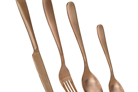 Набор LA PLATA выполнен в едином художественно-конструкторском решении и является результатом совместной работы дизайнеров и технологов компании. Полное соответствие мировым стандартам производства и передовые технологии FISSMAN гарантируют безопасность и непревзойденное качество продукции. Матовая полировка рабочих поверхностей и оригинальный цвет создадут праздничную атмосферу и украсят стол. Выполненный из высококачественной нержавеющей стали, набор прослужит вам долгие годы. • Надежность и долговечность - обладают коррозийной стойкостью • Прочность – изделия в наборе не деформируются и сохраняют свою форму • Отсутствие запаха и вкуса – насколько изысканным ни было блюдо, приборы не испортят его вкус металлическими нотками • Простота ухода – изделия легко моются • Не вступают в химическую реакцию с продуктами и не выделяют вредных веществ • Благодаря идеальной балансировке и весу столовые приборы удобны в использовании и делают прием пищи приятным • Безопасно для здоровья и окружающей среды