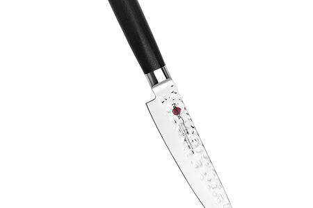 Универсальный нож меньше поварского, но несколько больше овощного, что делает его прекрасным инструментом для решения множества задач которые встречаются на кухне. Универсальный нож FISSMAN KENSEI KOJIRO 5.5" идеально подходит для измельчения различных душистых трав, чеснока, имбиря, а также для нарезки овощей или небольших кусков мяса. Устойчивость к коррозии и долговечность благодаря особой технологии закалки металла холодом Korudo до оптимального уровня 58 HRC по шкале Роквелла. Лезвие исполнено из высокоуглеродистой японской стали AUS-8, эта сталь очень прочная и великолепно держит заточку. Нож вручную доведен на водном точильном камне зернистостью 6000 грит для безупречной остроты. Идеальный угол резки благодаря заточке 15-17 градусов на сторону. Рукоять ножа выполнена из высококлассного водонепроницаемого износостойкого материала G-10, который отлично выдерживает как низкие, так и высокие температуры и благодаря которому нож не скользит в руке и не впитывает посторонние запахи. Упаковка из текстурного картона премиум класса с серебряным тиснением не оставит равнодушным ни одного настоящего ценителя ножей высокого качества.