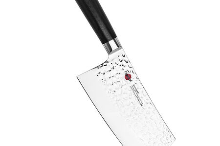 Кухонный топорик FISSMAN KENSEI KOJIRO 6.8" ваш надежный друг на кухне. Имеет прочное широкое прямоугольное лезвие. Идеально подходит для шинковки, нарезки больших твердых фруктов и овощей, приготовления мяса и рыбы. Устойчивость к коррозии и долговечность благодаря особой технологии закалки металла холодом Korudo до оптимального уровня 58 HRC по шкале Роквелла. Лезвие исполнено из высокоуглеродистой японской стали AUS-8, эта сталь очень прочная и великолепно держит заточку. Нож вручную доведен на водном точильном камне зернистостью 6000 грит для безупречной остроты. Идеальный угол резки благодаря заточке 15-17 градусов на сторону. Рукоять ножа выполнена из высококлассного водонепроницаемого износостойкого материала G-10, который отлично выдерживает как низкие, так и высокие температуры и благодаря которому нож не скользит в руке и не впитывает посторонние запахи. Упаковка из текстурного картона премиум класса с серебряным тиснением не оставит равнодушным ни одного настоящего ценителя ножей высокого качества.