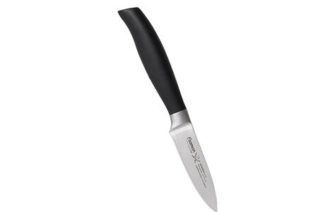 Овощной нож говорит сам за себя. Им легко нарезать любые овощи, фрукты, корнеплоды, придавать причудливую форму, избавлять от кожуры. Кухонные ножи серии KATSUMOTO выполнены из высоколегированной японской стали AUS-6, закаленной до 57 единиц по шкале Роквелла и имеют множество преимуществ. • Они обладают повышенной прочностью и подходят для частого использования. • Лезвия имеют двухстороннюю симметричную заточку по всей длине режущей кромки, что обеспечивает легкую нарезку и разделку. •Каждая модель оснащена больстером из нержавеющей стали равномерно распределяющим нагрузку во время работы. •Рукоятка из изящного POM материала имеет элегантную форму, обеспечивает надёжный захват и приятные тактильные ощущения. •Благодаря матовому покрытию она устойчива к скольжению и обеспечивает безопасную работу.
